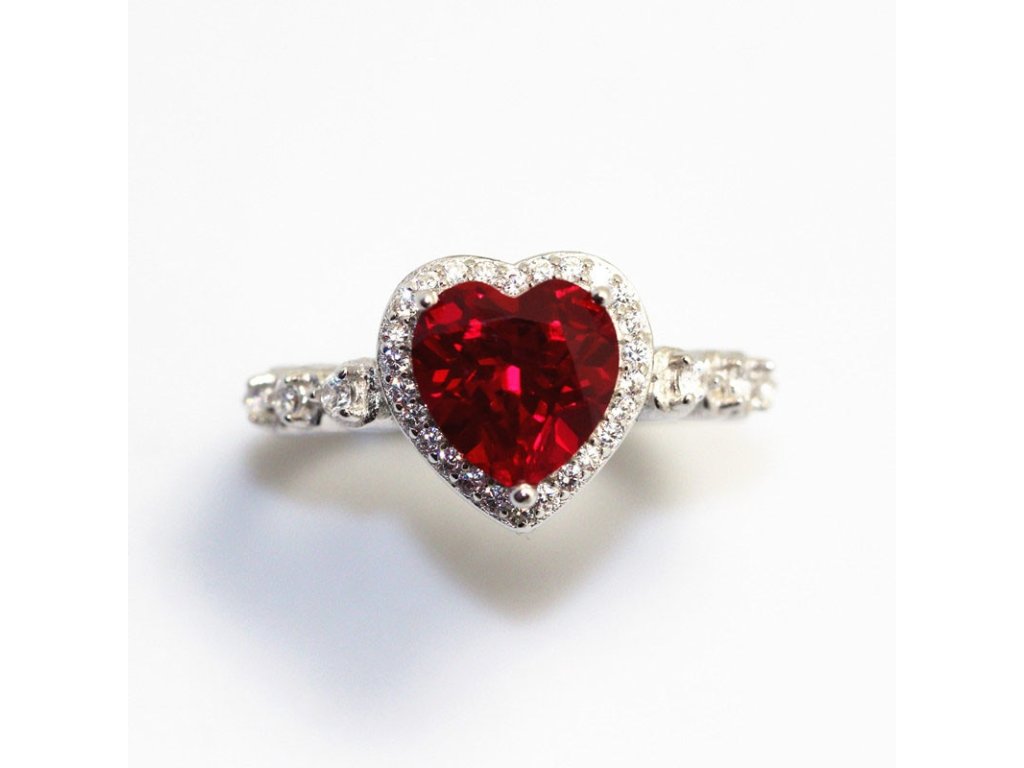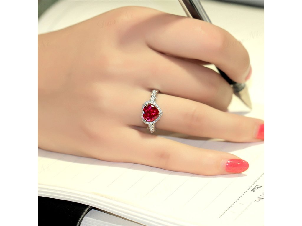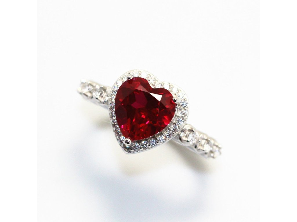 Prestižní stříbrný prsten s kubickým granátem zdobený drobnými zirkony.